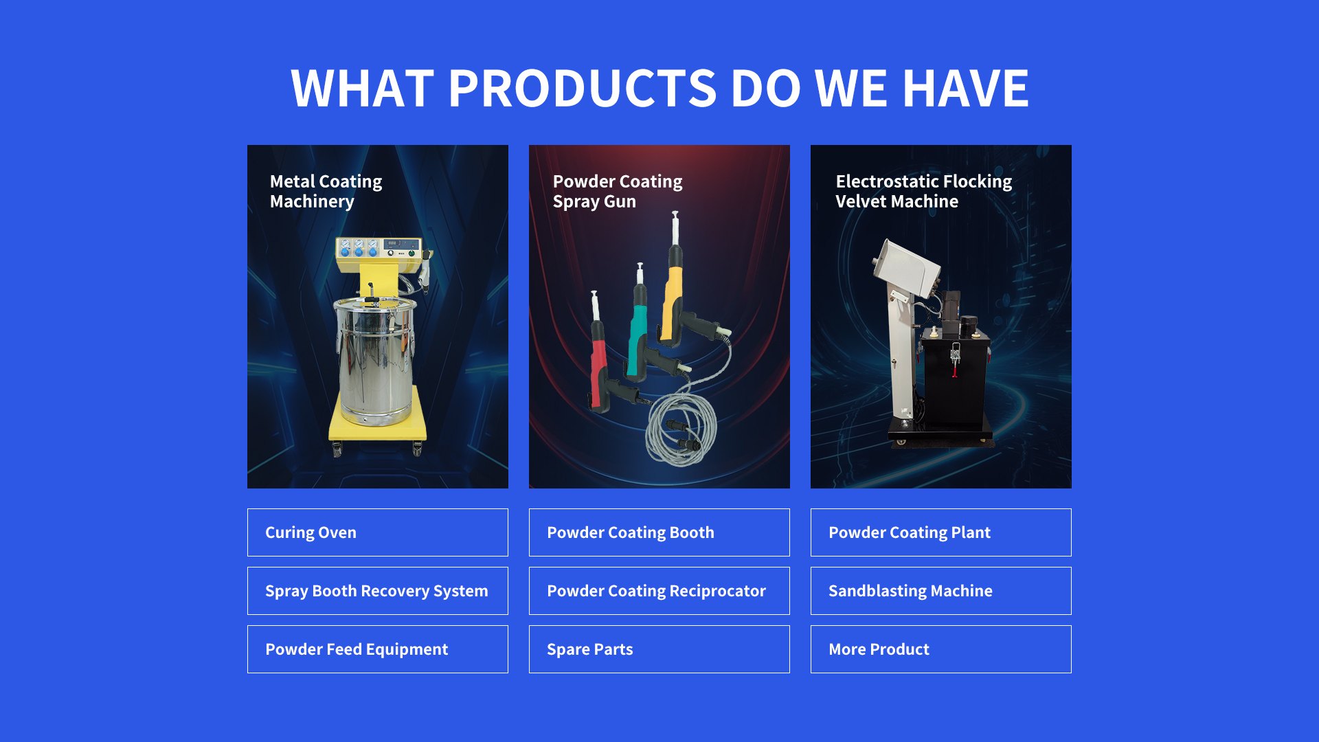 Powder Coat Machines offer precision coating for any surface, transforming your finishing processes. Engineered for versatility and reliability, our Powder Coat Machines ensure consistent, high-quality coatings that enhance durability and aesthetics.